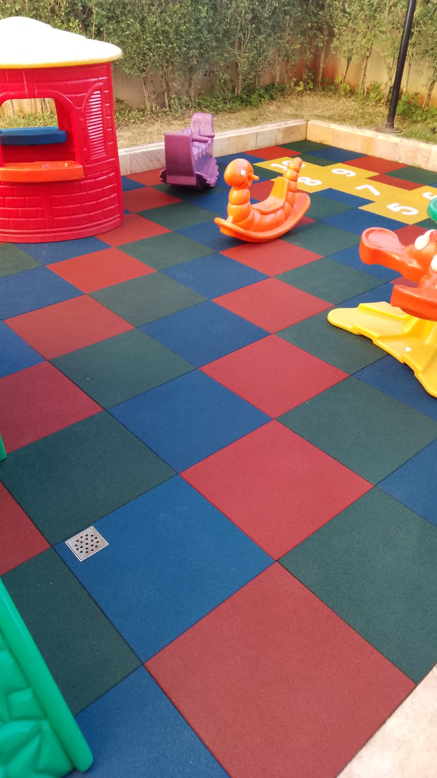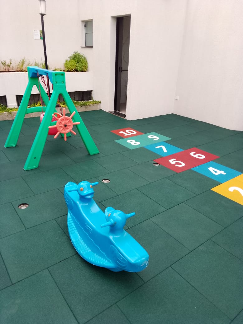 QUADRADO 50X50CM Soft: Maior absorção de Impacto e mais macio; Normal: Versão padrão para academias e playgrounds. Disponíveis nas espessuras de 7, 11, 16 e 21mm. Pode ser instalado com travas, ou cola, o piso não encharca.